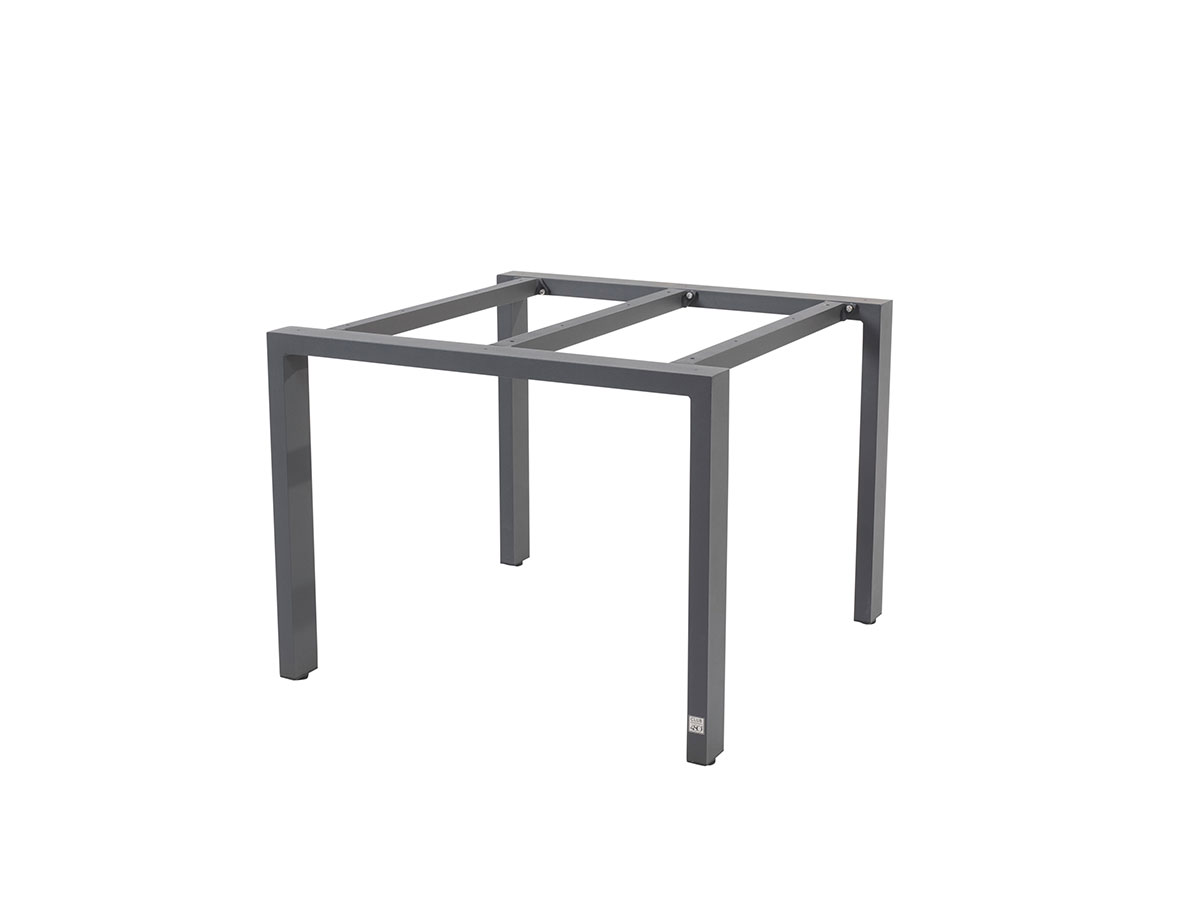 Das Goa-Tischgestell zeichnet sich durch seine klare, schnörkellose Linienführung aus. Gefertigt aus hochwertigem, pulverbeschichtetem Aluminium in Anthrazit, ist es nicht nur ein optisches Leichtgewicht, sondern auch vollkommen rostfrei. Die quadratische Form macht den Tisch zu einem echten Allrounder: Er bietet bequem Platz für zwei bis vier Personen und lässt sich bei Bedarf wunderbar mit weiteren Goa-Modellen zu einer größeren Tafel kombinieren.