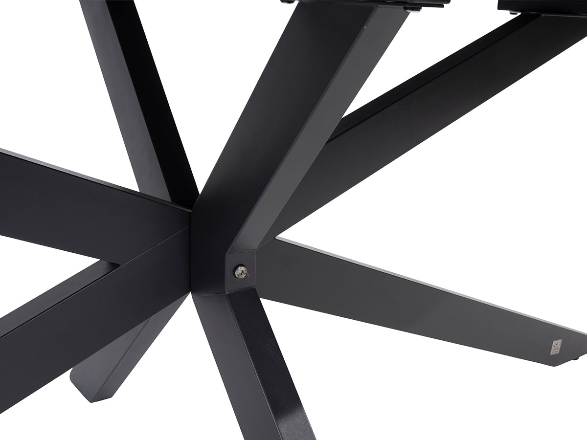 Das Privada-Tischgestell bricht mit klassischer Symmetrie. Die markanten, schräg verlaufenden Aluminiumbeine verleihen dem Tisch eine dynamische, fast schwebende Optik. Trotz seines filigranen Erscheinungsbildes ist das pulverbeschichtete Aluminiumgestell extrem stabil und absolut rostfrei. Da die Tischbeine so konstruiert sind, dass sie viel Freiraum unter der Platte lassen, genießen Ihre Gäste maximale Beinfreiheit – ganz ohne störende Ecken.