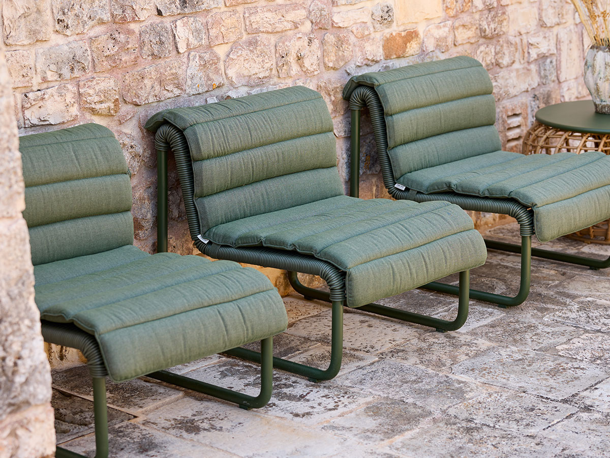- Niedrige, zurückgelehnte Sitzsilhouette für entspanntes Loungen