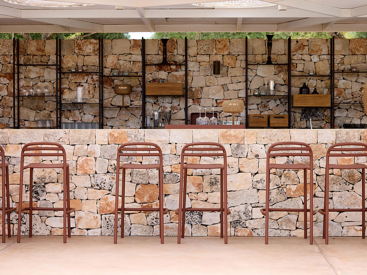 Der Bliss Barhocker von Foersom & Hiort-Lorenzen MDD bringt eine schlichte, elegante Ästhetik in Außenbereiche und moderne Architekturumgebungen. Dank der erhöhten Sitzhöhe eignet er sich für Bars, Kücheninseln und Cafétheken. Sein schlankes Profil aus pulverbeschichtetem Aluminium wirkt visuell leicht und bietet zugleich zuverlässige Stabilität – ideal für den privaten Outdoor-Bereich ebenso wie für anspruchsvolle Gastronomiesettings.