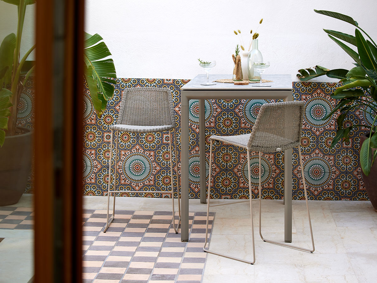 Der Cane-line BREEZE Barhocker ist handgeflochten aus der einzigartigen Cane-line Faser, die den Hocker witterungsbeständig macht und ermöglicht, dass Breeze das ganze Jahr über draussen stehen bleiben kann. Mit einem Cover versehen, erleichtert man die Reinigung nach dem Winter.