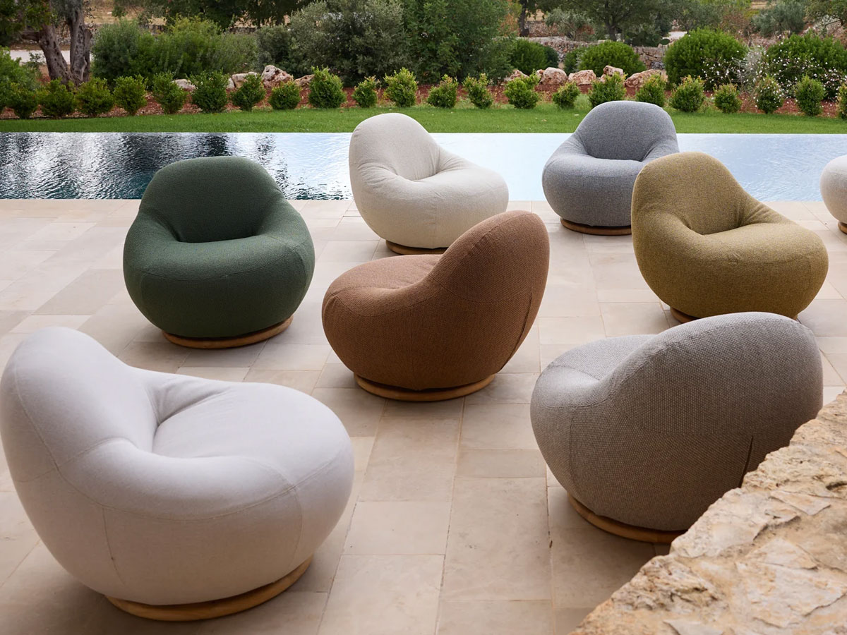 Der Gem Loungesessel mit Teak-Drehfuß verbindet eine weiche, skulpturale Form mit alltagstauglicher Funktion. Dank 360°-Drehfunktion wechseln Sie mühelos die Ausrichtung – ideal für Lounge-Setups, Gespräche oder entspannte Lesemomente. Mit QuickDry ist der Sessel zudem für den Einsatz im Außenbereich geeignet. Die großzügige Polsterung sorgt für Komfort, das Design wirkt modern und einladend.