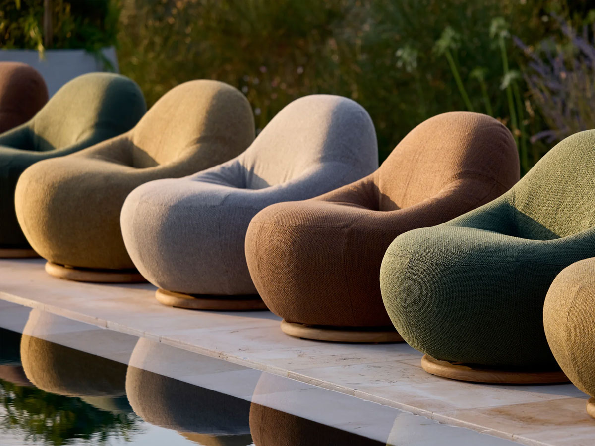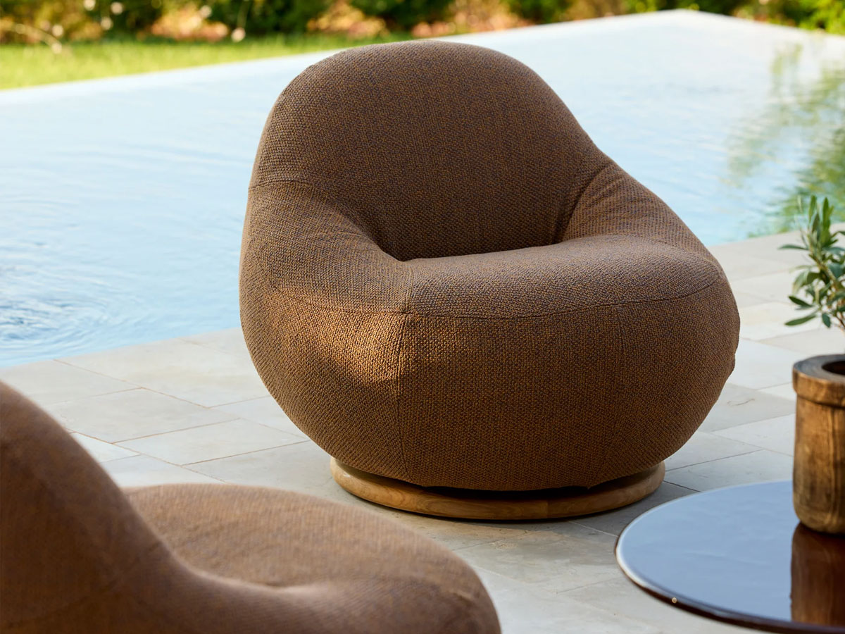 Der Gem Loungesessel mit Teak-Drehfuß verbindet eine weiche, skulpturale Form mit alltagstauglicher Funktion. Dank 360°-Drehfunktion wechseln Sie mühelos die Ausrichtung – ideal für Lounge-Setups, Gespräche oder entspannte Lesemomente. Mit QuickDry ist der Sessel zudem für den Einsatz im Außenbereich geeignet. Die großzügige Polsterung sorgt für Komfort, das Design wirkt modern und einladend.