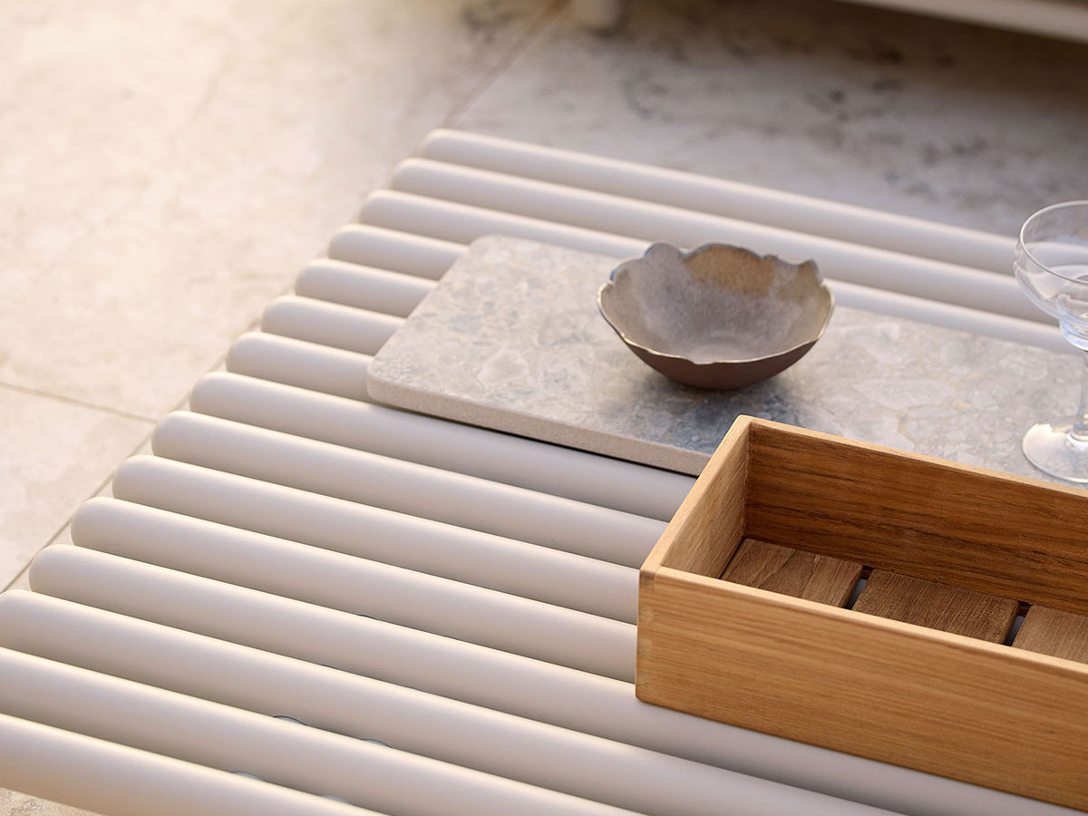 Als glatte, stilvolle Ablagefläche eignet sich die Tischplatte perfekt, um dekorative Elemente wie Kerzen, Vasen oder kleine Pflanzen in Szene zu setzen. Entwickelt für das Sticks Couchtisch-System, ergänzt sie das Möbelstück um eine funktionale Fläche und wertet das Gesamtbild sichtbar auf – dezent, aber wirkungsvoll.