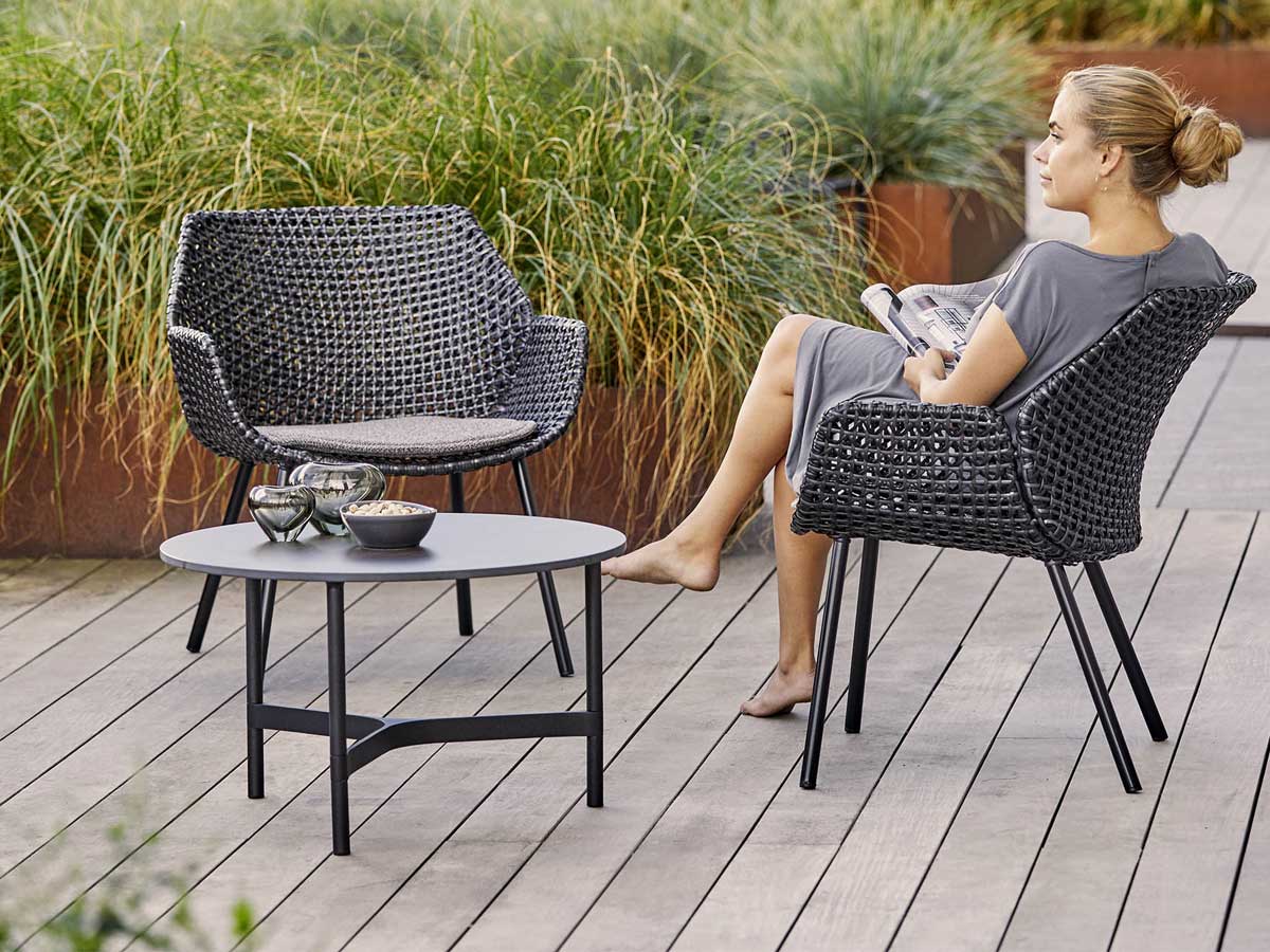 Cane-line Twist Couchtisch, large Lava Grey mit Tischplatte Keramik rund 90 cm