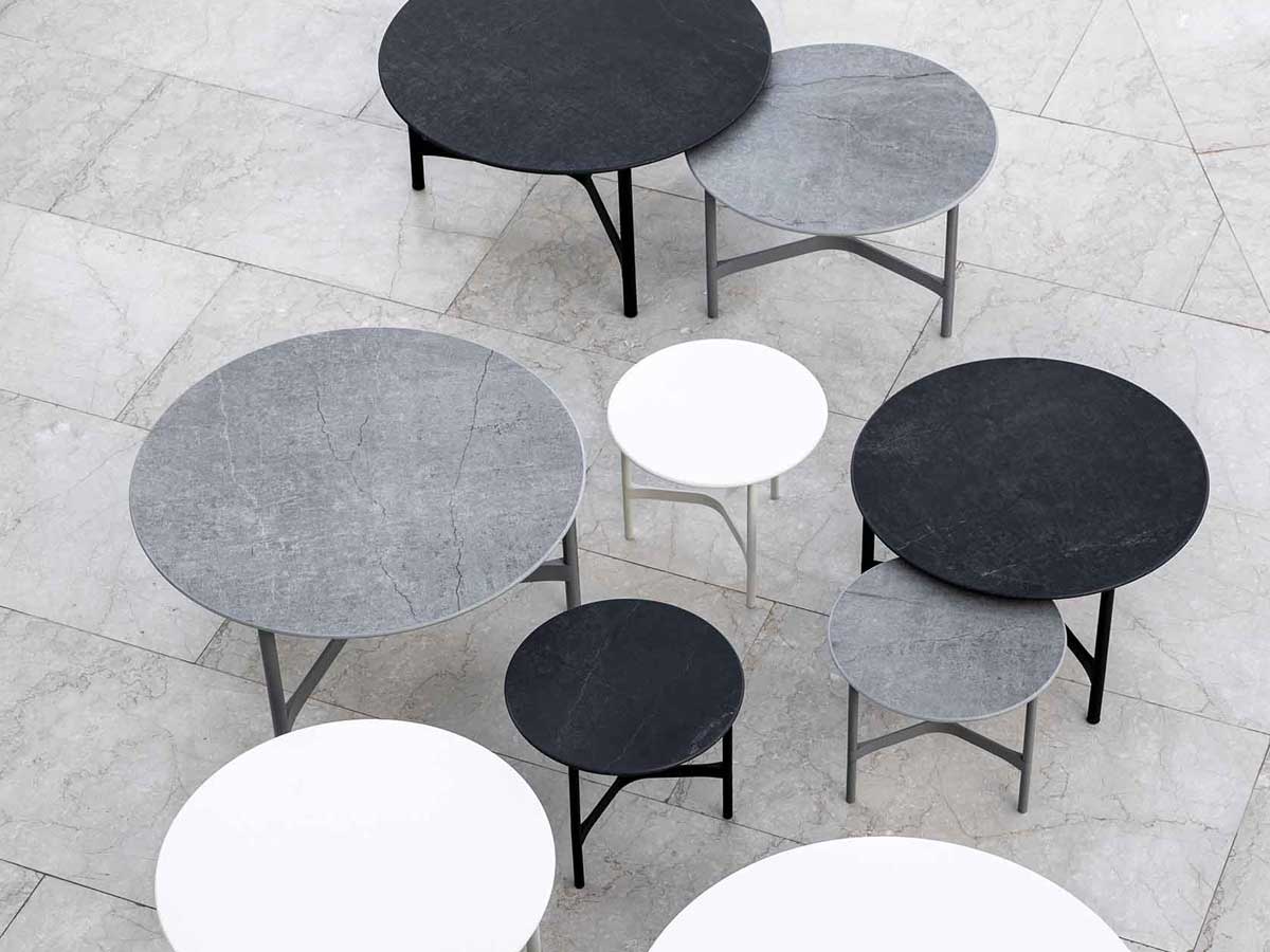 Cane-line Twist Couchtisch, medium, White mit Tischplatte Keramik rund 70 cm