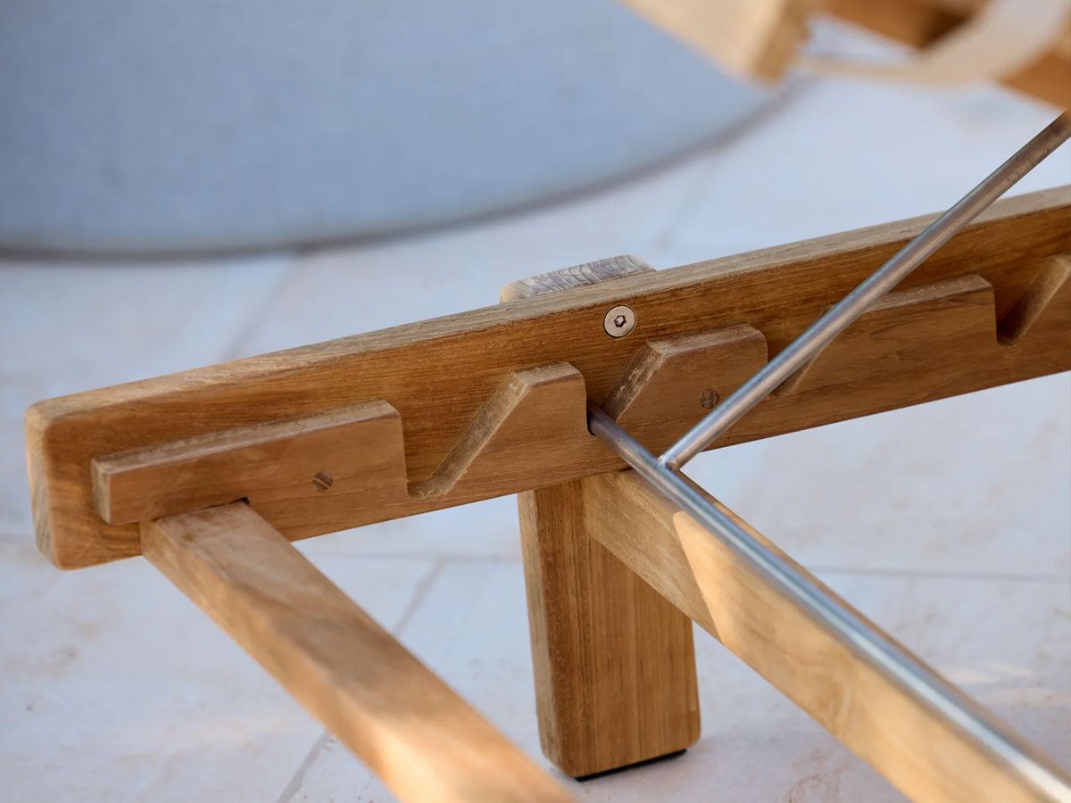 Die Vista Sonnenliege von Cane-line Design überzeugt mit einer modernen, minimalistischen Ästhetik und ist aus zertifiziertem Teakholz der Qualitätsklasse A gefertigt. Klare Linien und die angenehm taktile Oberfläche bringen dezente Eleganz in den Außenbereich – ob am Pool, auf der privaten Terrasse oder in einer Hotelanlage. Das Teakholz steht für Langlebigkeit und einen warmen, zeitlosen Ausdruck; die verstellbare Rückenlehne ermöglicht individuellen Liegekomfort.