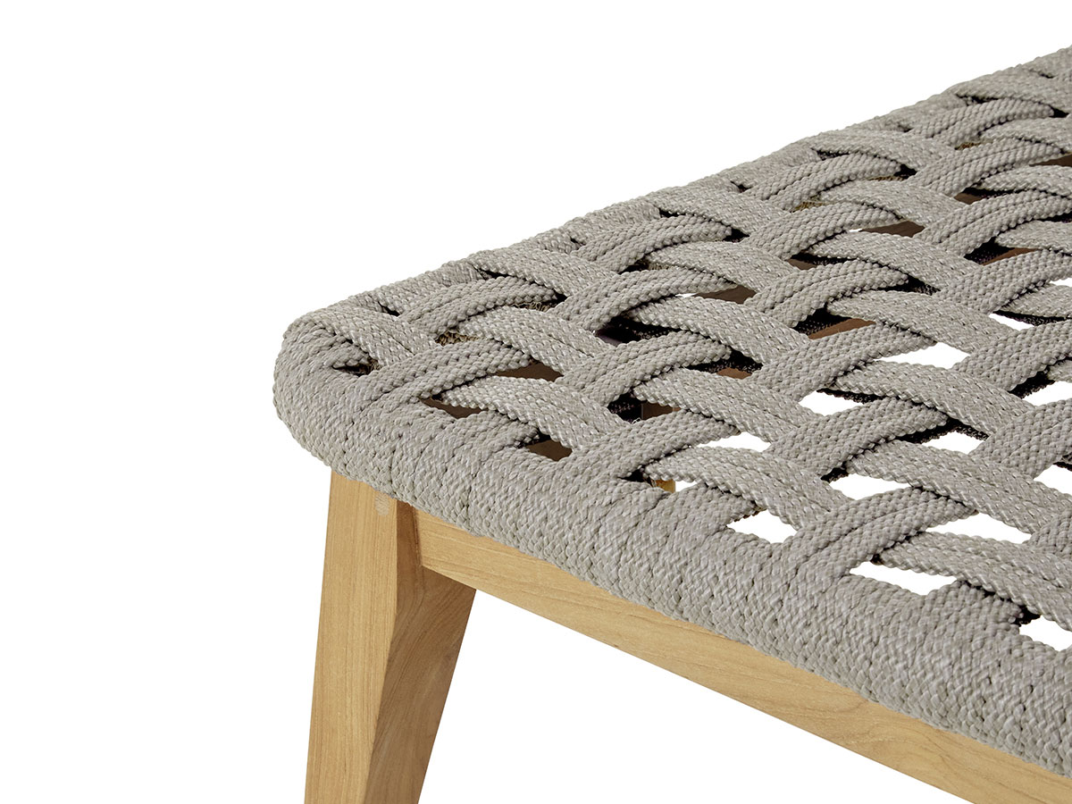 Das Sofa ist in den eleganten Varianten „Rope“ Dark Grey und „Rope“ Light Grey verfügbar, jeweils kombiniert mit einem hochwertigen Teak-Unterbau.