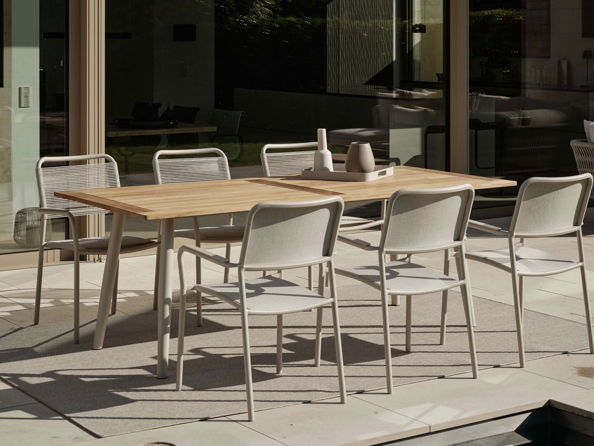 - Armlehnenhöhe: 66 cm. Tipp: Passt unter die meisten Tische (Standard-Lichthöhe meist ca. 68–70 cm), was die Terrasse optisch aufgeräumt wirken lässt.