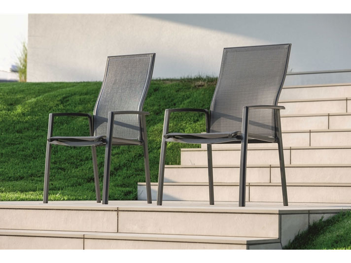 Stern Kari Plus Stapelsessel, Aluminium anthrazit mit Bezug Textilen karbon