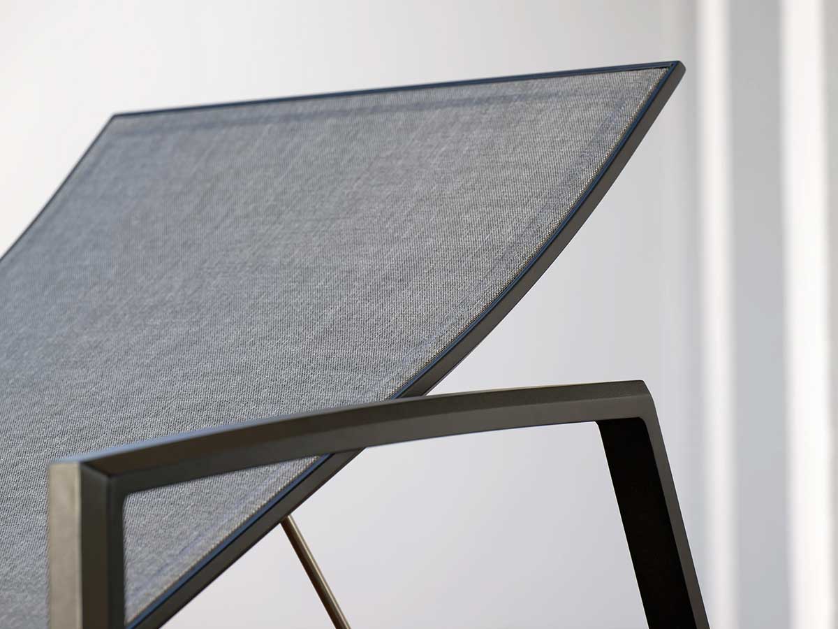 Stern Kari Rollenliege Aluminium Schwarz matt, Textilen Leinen Grau stapelbar